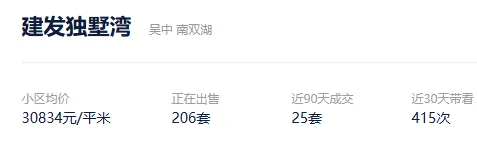 根据贝壳信息显示,建发独墅湾目前206套挂牌出售,挂牌均价30834元/平。