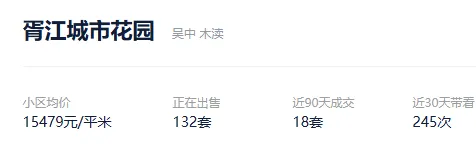 根据贝壳信息显示,胥江城市花园目前132套挂牌出售,挂牌均价15479元/平。
