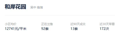 根据贝壳信息显示,和岸花园目前92套挂牌出售,挂牌均价12741元/平。