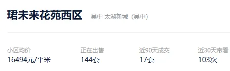 根据贝壳信息显示,珺未来花苑西区目前144套挂牌出售,挂牌均价16494元/平。