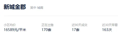 根据贝壳信息显示,新城金郡目前170套挂牌出售,挂牌均价16589元/平。
