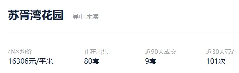 根据贝壳信息显示,苏胥湾花园目前80套挂牌出售,挂牌均价16306元/平。