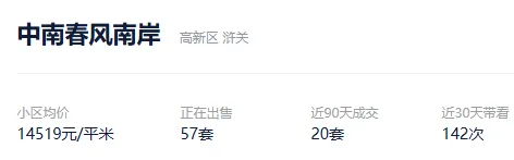 根据贝壳数据显示,今年以来,该社区成交了8套二手住房,套均成交面积158.18平,平均挂牌单套总价327万元,挂牌单价20688元/平,平均成交周期228天。