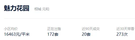 根据贝壳信息显示,魅力花园目前172套挂牌出售,挂牌均价16463元/平。