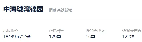 根据贝壳信息显示,中海珑湾锦园目前129套挂牌出售,挂牌均价18449元/平。
