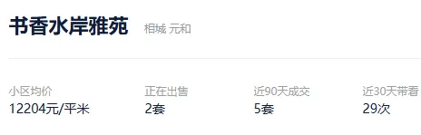 根据贝壳信息显示,书香水岸雅苑目前2套挂牌出售,挂牌均价12204元/平。