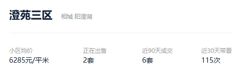 根据贝壳信息显示,澄苑三区目前2套挂牌出售,挂牌均价6285元/平。