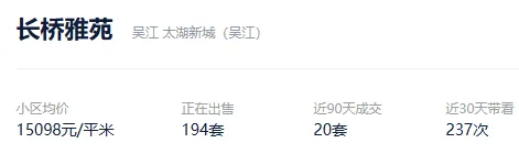 根据贝壳数据显示,2026年1月1日以来,吴江成交了571套二手住房,涉及了8个板块的204个社区及组团,套均成交面积119.39平,平均挂牌单套总价155万元,挂牌单价13000元/平,平均成交周期287天。