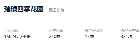根据贝壳信息显示,璀璨四季花园目前210套挂牌出售,挂牌均价15024元/平。