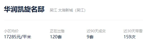 根据贝壳信息显示,华润凯旋名邸目前120套挂牌出售,挂牌均价17285元/平。
