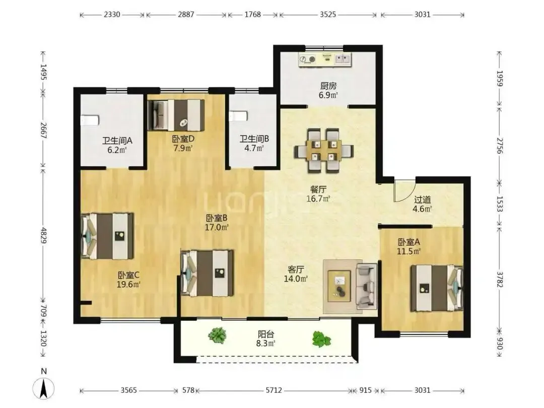 4.万象汇 华润瑞园144平方,四房两厅两卫,边套,365万,带子母车位,不满两年