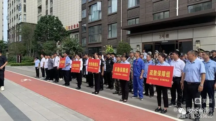此次演练主要模拟城市发生强降雨和连续性降水,超过城市排水能力,致小区内低洼地区积水,地下空间遭淹浸,雨水倒灌地下车库浸水情景,根据演练计划,将演练人员分为抢险救援、后勤保障、疏散保障、安置保障组、医疗保障五个小组,各小组分工明确、各司其职。