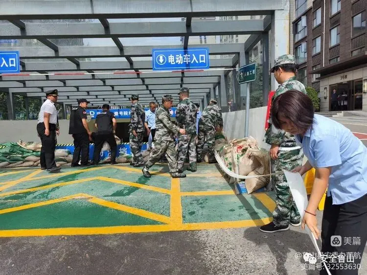 根据现场演练指令,防汛抢险人员迅速赶往现场,抢险救援组在地下车库出入口使用防汛备用沙袋交叉叠放,分层错缝垒筑、压实,并用雨布裹住沙袋,筑起防汛沙袋墙,进行雨水堵截。抢险救援组开展应急抢排积水,启动应急发电机和应急照明设施,将地下室内的涝水排出。疏散保障组对地下淹没的人员进行疏散,把受困群众疏散到安全地带。后勤保障组及时发放生活物资,做好受困群众的安置工作,安抚群众的情绪。医疗保障组对受伤的群众进行紧急救治,发现受伤严重的人员后,及时联系120急救中心,将群众尽快转运至医院接受治疗。