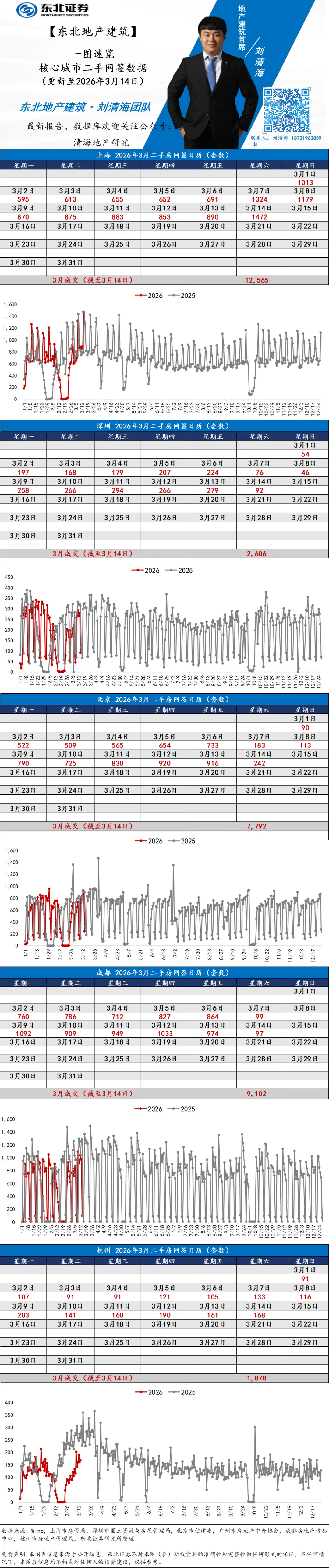 >【一图速览】核心城市二手房网签日历(20260314)丨东北地产建筑刘清海团队