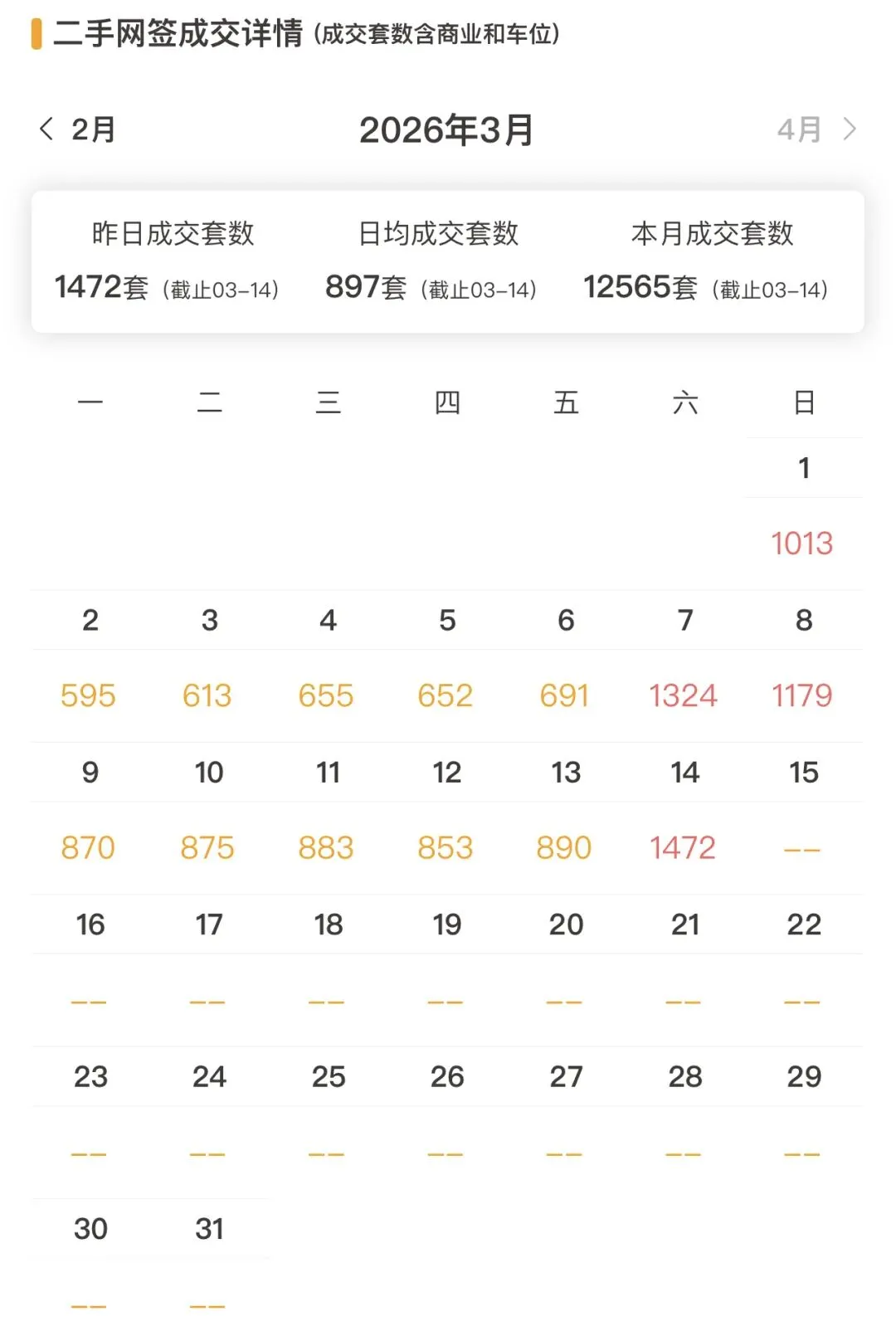 但别急着遗憾。另一个更硬核的数据已经悄然刷新:3月13日的890套,这个工作日的成交表现,已经超过了去年3月的任何一个工作日。
