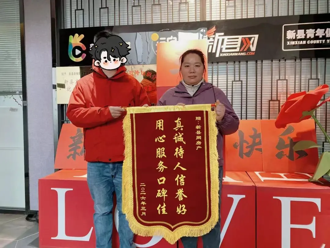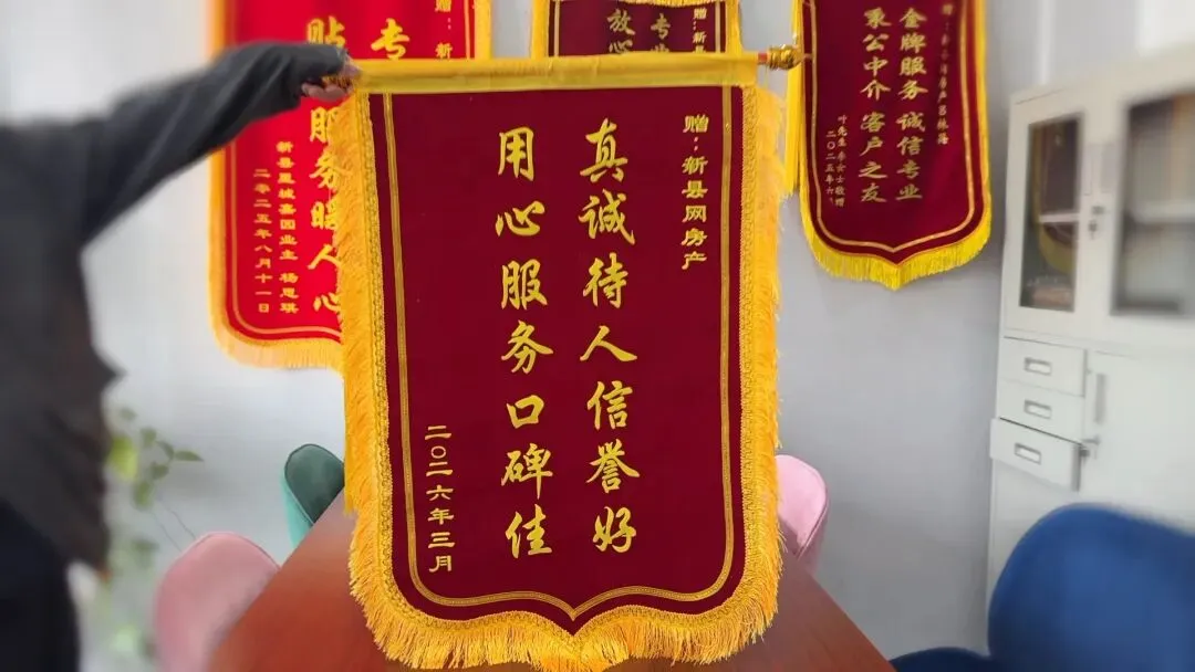 近日,新县网房产接连收到客户赠送的两面锦旗,“用心服务口碑佳”“真诚待人信誉好”,短短数语,是客户对我们工作的最高肯定,更是沉甸甸的信任与托付。