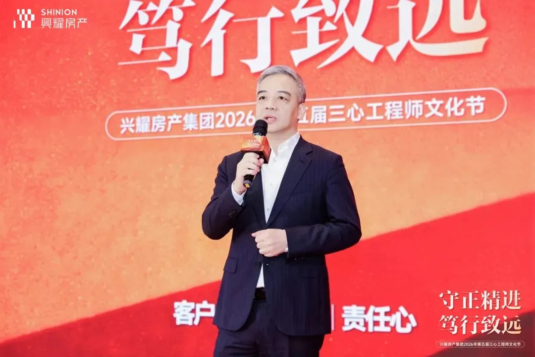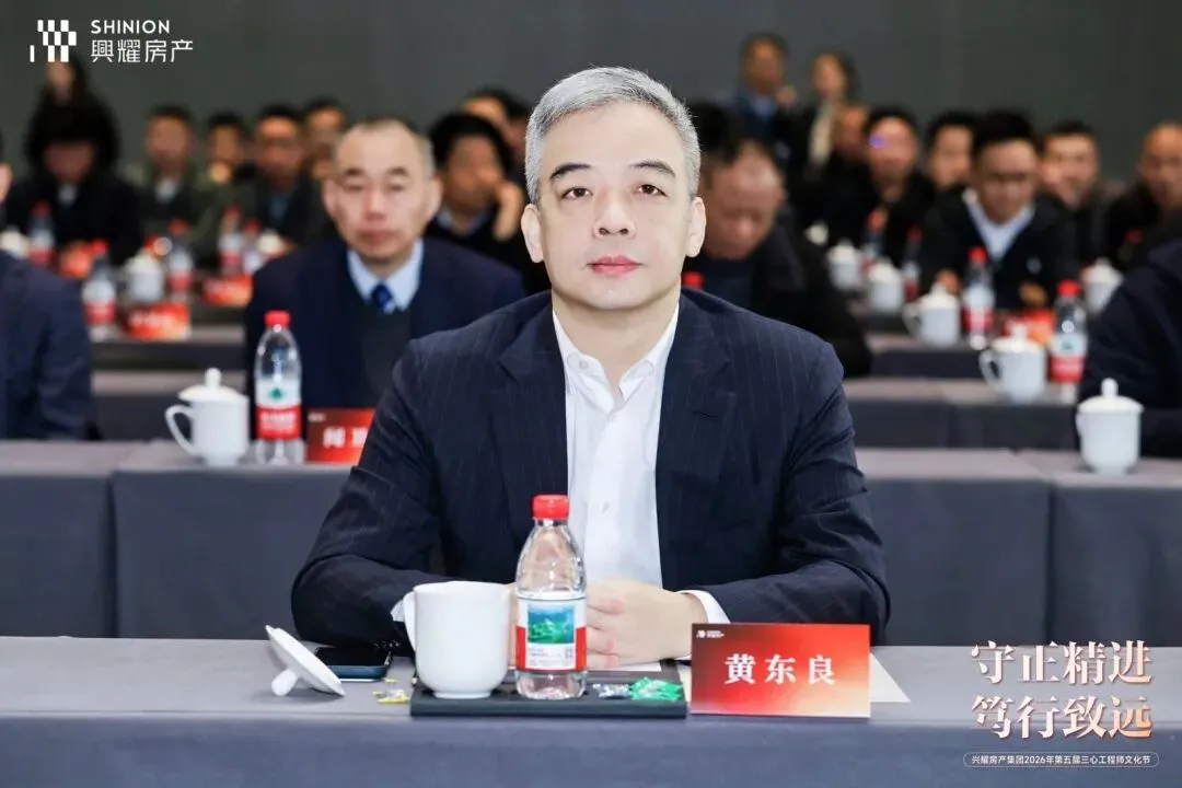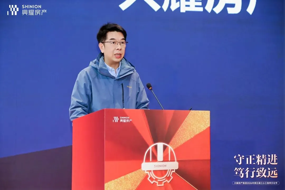 会上,兴耀控股集团总裁、兴耀房产集团董事长黄东良发表重要讲话。他表示,兴耀产品的市场口碑离不开团队的倾力付出与专业坚守。当前行业进入新阶段,国家“好房子”写入规划,对专业能力提出更高要求。选择3·15作为工程师文化节,寓意坚守对客户的责任。期待工程师团队与合作伙伴共同提升专业、管理与执行能力,携手打造让客户满意的产品,共同成长。