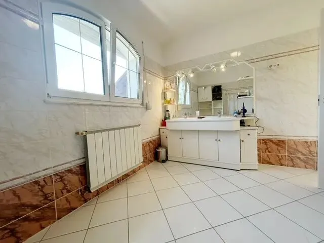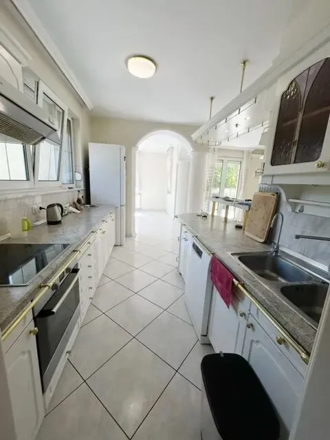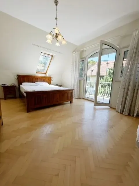 占地面积:1145平米建筑面积:300平米房型介绍:楼层:一共三层(车库地下室0层+1层+2层)地下室:有2间带浴室卫生间的大车库+锅炉房+洗衣房+桑拿间1层:玄关-卫浴-大客厅-美式厨房-储存室-餐厅-大全景露台-小露台2层:连廊-带露台主卧-带露台次卧-客卧-独立衣帽间-卫浴-独立卫生间建筑年份:1995年售价:74.5万欧元(2.92亿福林)别墅座落在法校别墅区,风景十分优美,街区安静,邻里友好,居住圈层高尚。别墅掩映在绿树蓝天下,红色的屋顶,白色的圆弧形大小不一的露台,在夏日的阳光里熠熠生辉,在冬日的白雪里温暖如春。占地1145平方米的别墅,前院是干净利落的硬化路面,一进入院子就让人安心舒适,拾阶而上,打开入户门,宽敞玄关,偌大明亮采光通透的客厅,有欧式的壁炉,几根罗马柱子围成的餐厅,开放式却特别设计在靠近大露台一侧的厨房,虽然是开放式却又相对独立,带有隐蔽式的厨房收纳储存间,非常实用。整个一层几乎就只是巨大的起居室,通透明亮,阳光洒满!到达二层是安静的卧室区域,一共有4间卧室和一个衣帽间,每一间都连结着宽敞的连廊,有浴室也有独立的卫生间!别墅的底层是干燥的洗衣房锅炉房等,大车库的进出口独立在后院,由别墅的另外一侧进入后院。巨大的后院部分硬化,其它都是整齐的绿地。平整开阔的后院还有泳池!后院的风景秀丽优美,令人心旷神怡!别墅四周院子都可通行,四面采光通透,每个方向都有不同的风景。别墅近法校、离美校不远、虽是别墅区、但是周边交通十分便利,公交车很方便就到达Hűvösvölgy 电车总站。更多咨询请联系电话:06309960451微信:fengshuihouse1BX250724