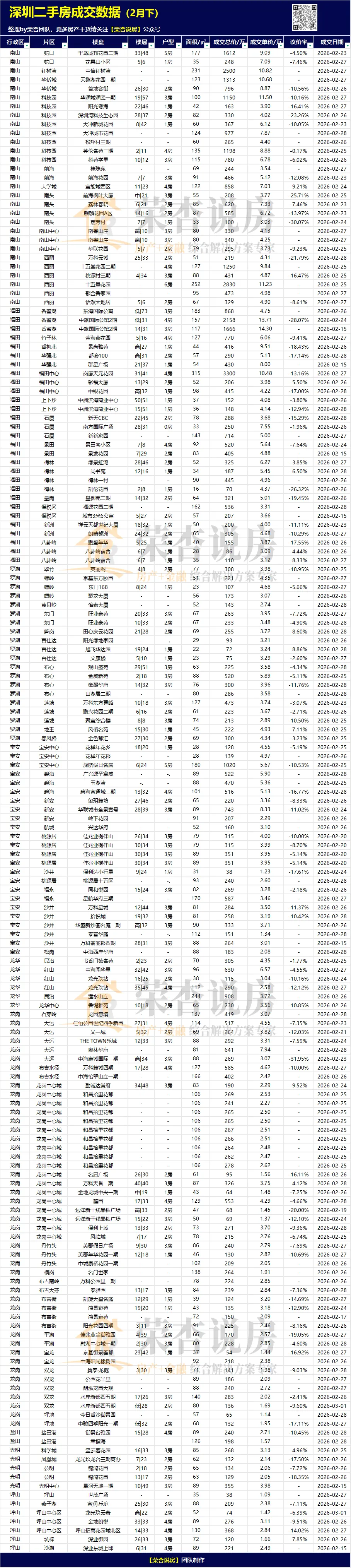 下面按惯例分享深圳楼市2月下的二手房成交情况,前两天后台已经有性子急的朋友们催更,可以直接上小程序去查数据,比公众号的更新会快不少,更能满足大家的时效性要求。