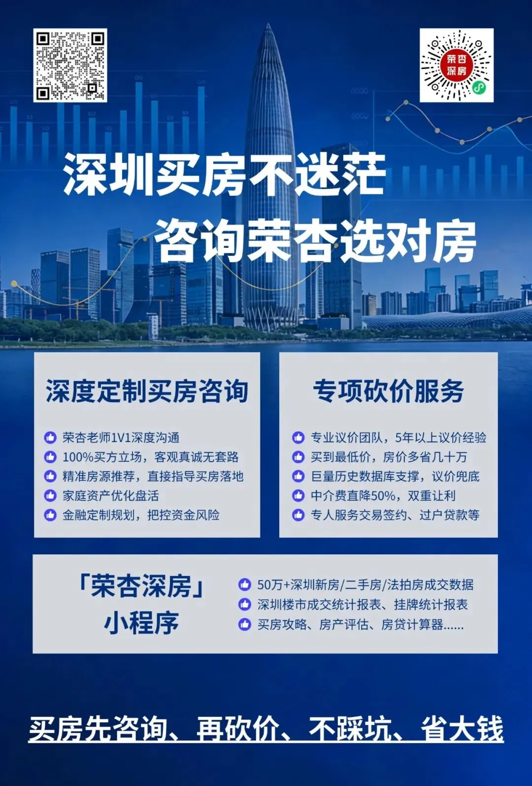 2025年专门为深圳买房人开发了个工具——「荣杏深房」小程序,提供深圳楼市各类数据和统计报表,以便让大家看清楼市行情。