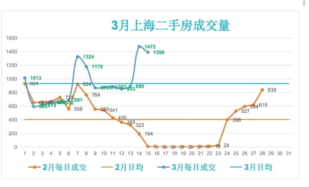 🏡3月,上海二手房成交量累计13955套,日均成交930套,较上个月日均增加526套(增幅130.2%)。