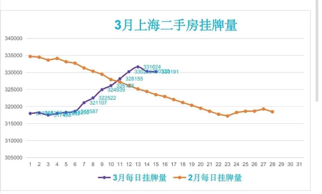 🏠昨日(3月15日,周日)挂牌330191笔,较前一日减少132笔,日均挂牌323571笔,约32.36万笔,挂牌与实际成交比347:1,去化周期约11.6个月。