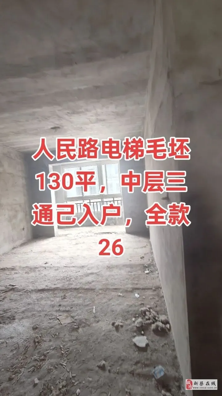 房屋详情:出售:人民路电梯中层,毛坯130,3室2厅1卫,全款26,小区停车出行方便, 看房有钥匙15136568655