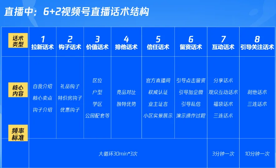 今天我们再拆解一下,一场高效的房产直播,话术必须遵循“6+2”结构。