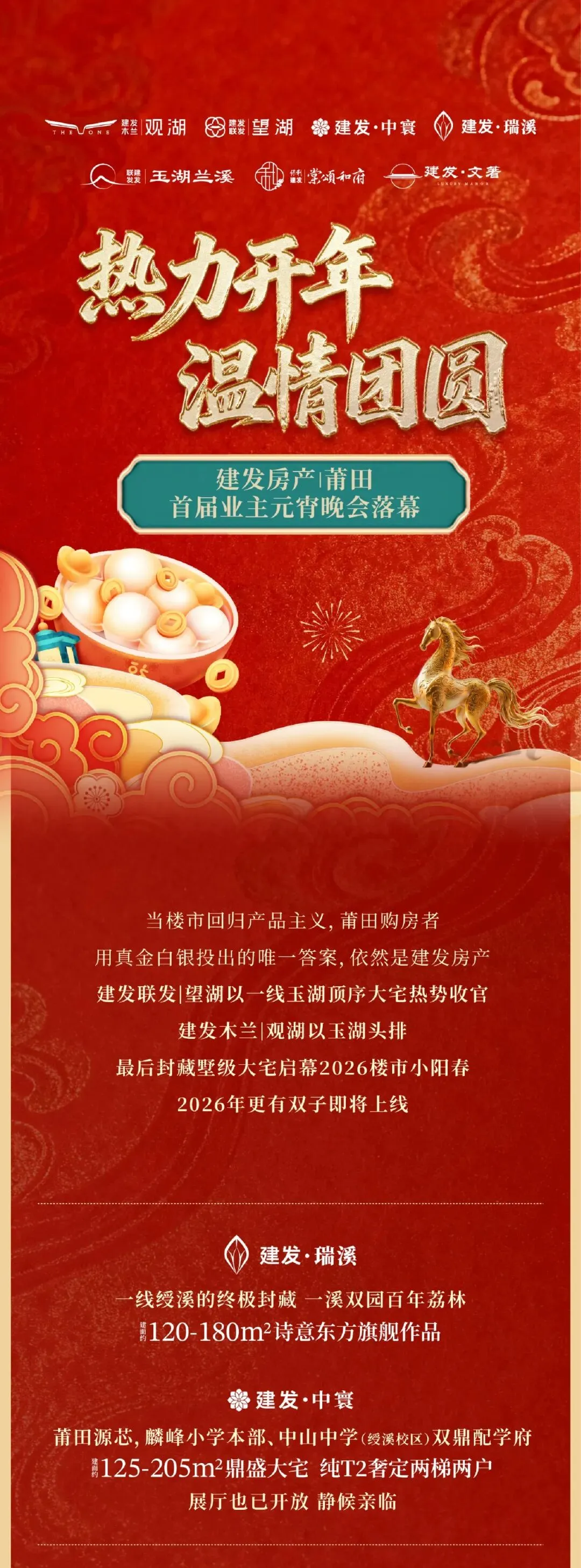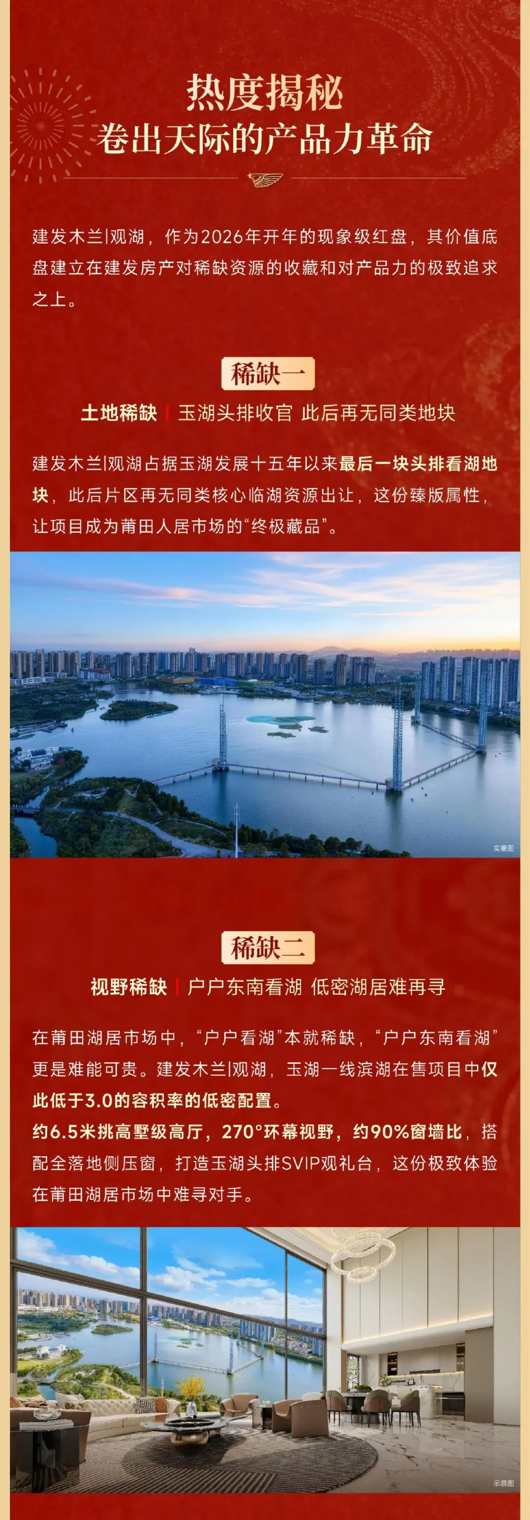 本案推广名为“建发木兰丨观湖",备案名为“湖璟轩”,开发公司为“莆田市冰雪旅游开发有限公司”。预售证号:“(2026)莆房许字第7号”、“(2026)莆房许字第8号”。本广告为售楼宣传资料,所有图片及资料仅为参考之用,所有内容均以政府最后批准之法律文件及买卖双方签订的《商品房买卖合同》为准。因为涉及、施工、技术及政府政策的调整需要,本公司保留对本图册修改的权利,敬请留意最新资料。制作时间2026年3月15日,有效期截止至2026年3月31日。