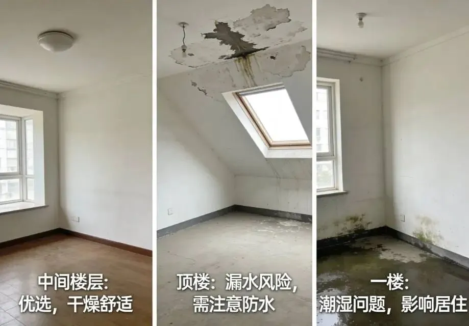 刚需自住优先中间楼层,顶楼夏天热、漏水风险高,一楼潮湿、采光差、人流量杂,除非价格特别低且带院子,否则尽量不碰。