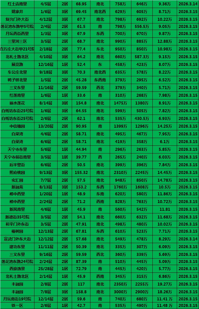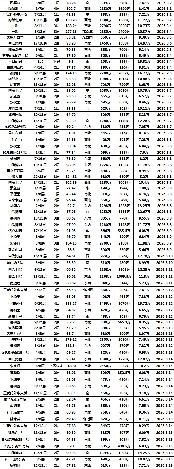 3.1-3.16北京西城二手房成交数据参考