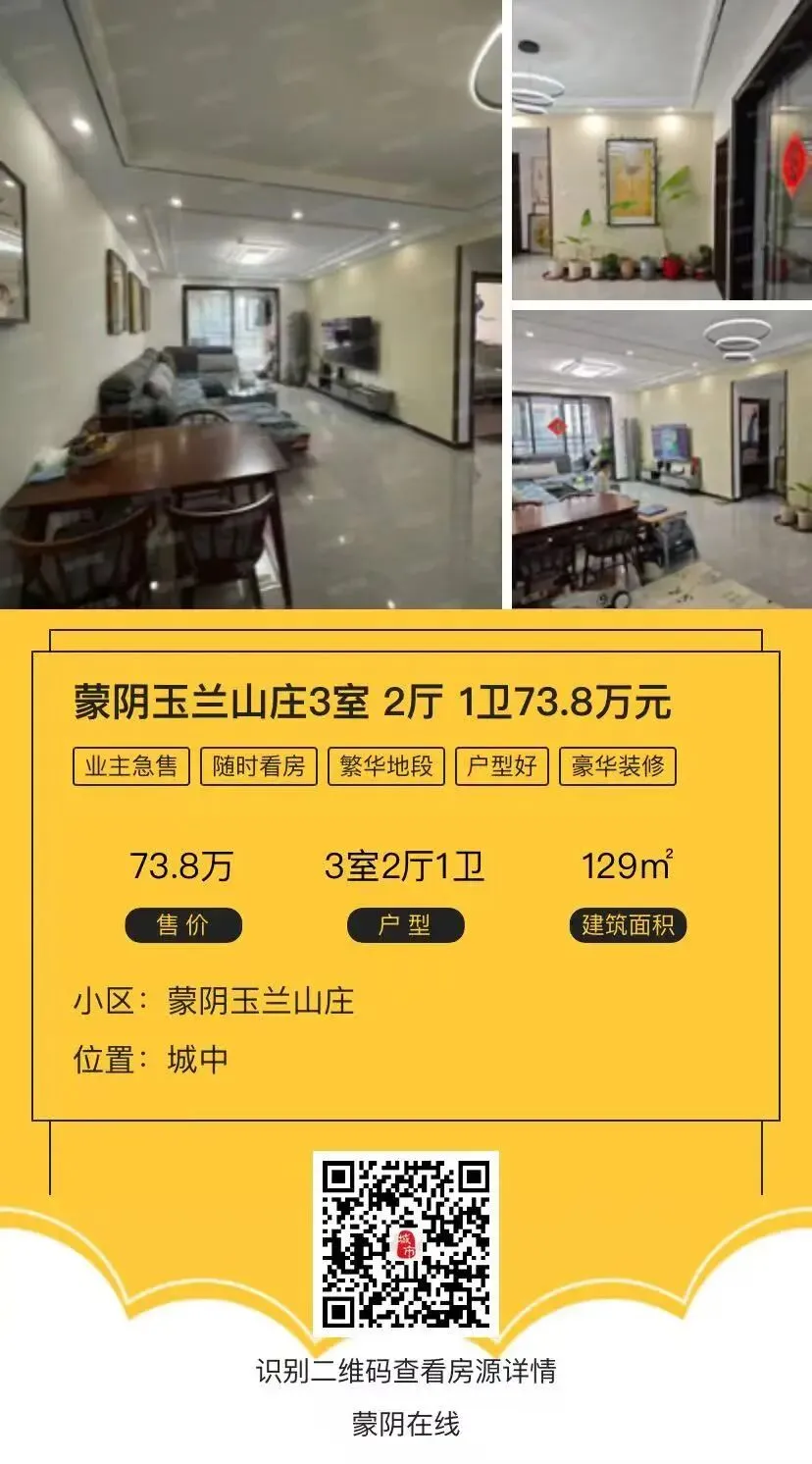 关注蒙阴在线公众微信号—蒙阴在线网络传媒,后续还会不定期为您推荐优质房源!身边有亲朋好友有相关需求的也可以分享给TA!