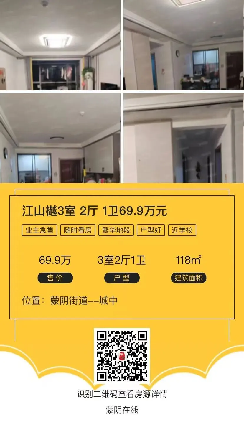 最近有在找二手房、出租、店铺转让信息吗?以下是部分房源,如果您在找房源信息可以看看!也可点击底部“阅读原文”即可进入蒙阴在线房产网,或直接向蒙阴在线公众微信号—蒙阴在线网络传媒发送关键词“房屋”,查看、发布各类房源信息