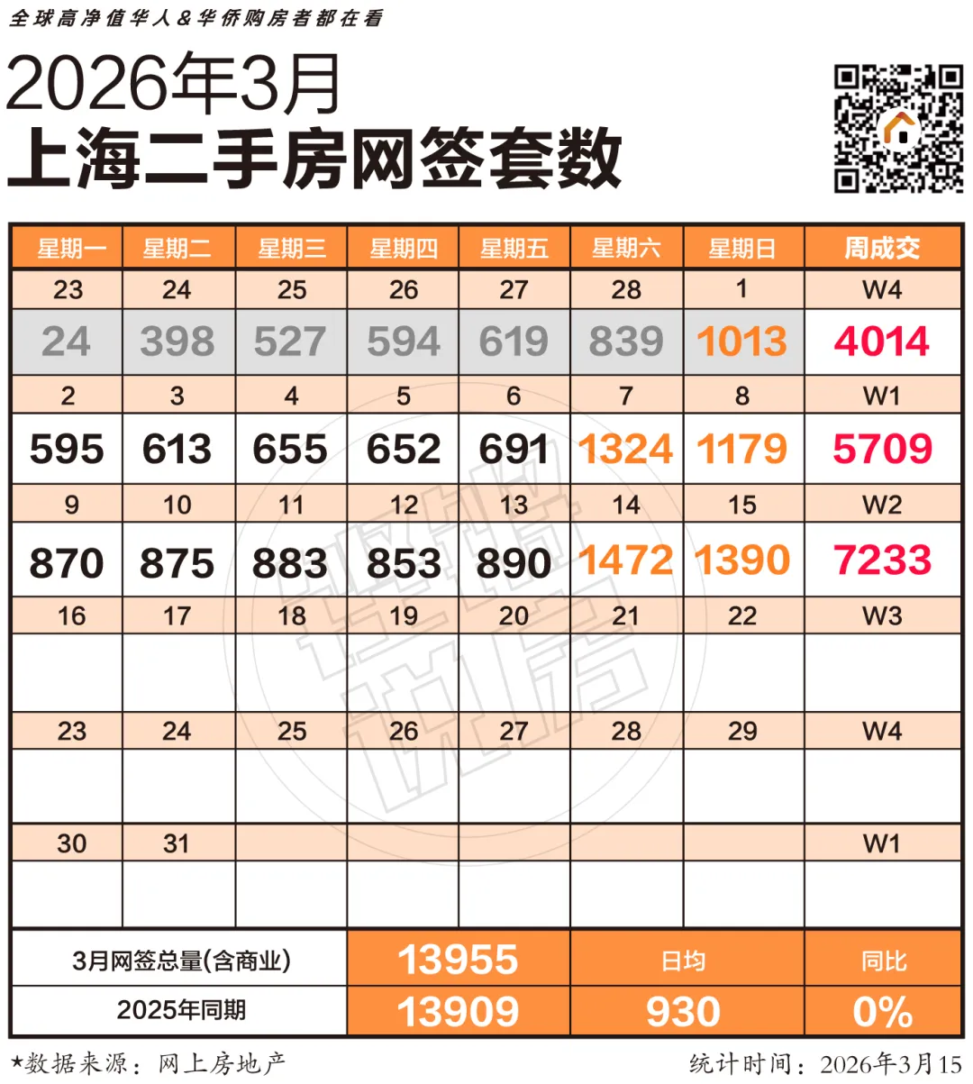 截至目前,上海3月的二手房成交量已经来到了13955套,平均每天成交930套。