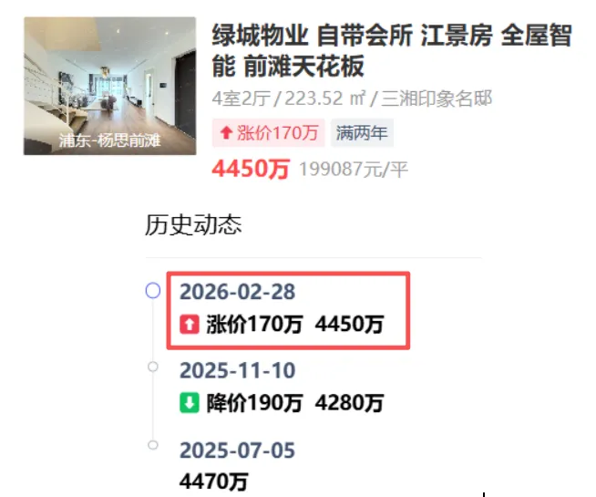 但是在2月28日的时候,又把挂牌价向上抬高了170万!