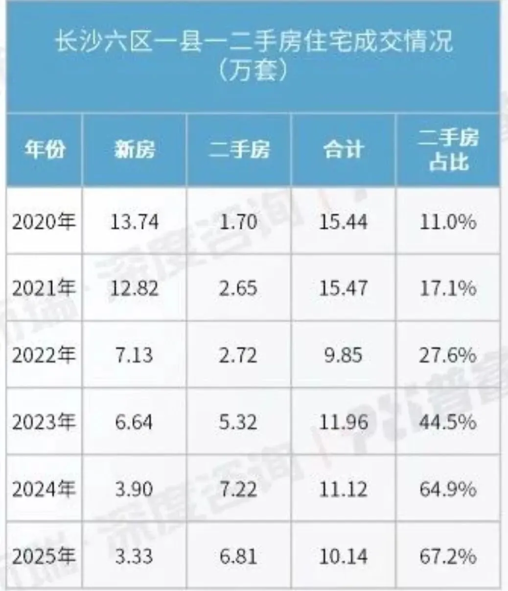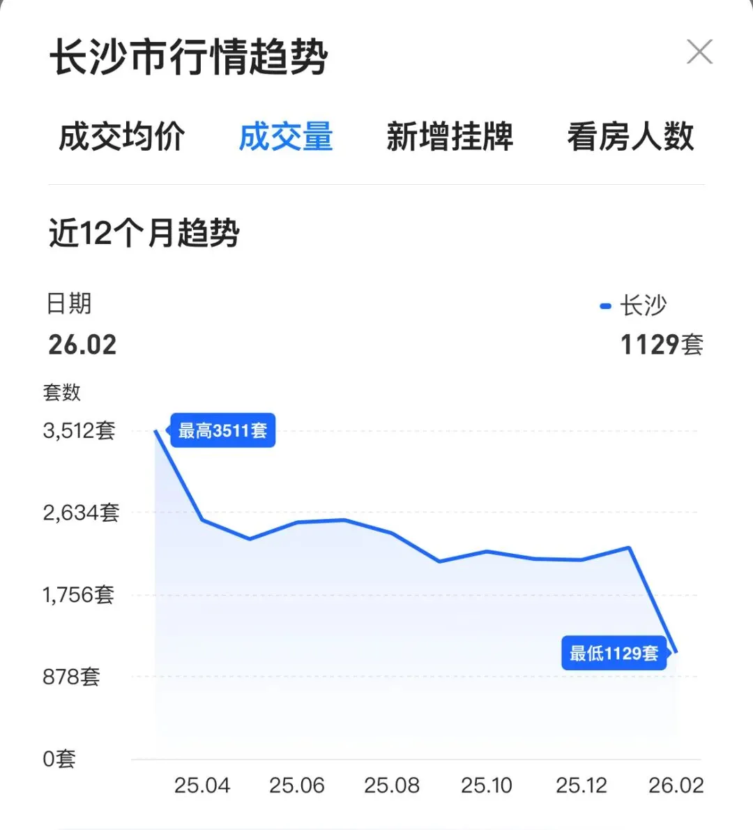 贝壳外网显示长沙二手房挂牌约7.7 万套,但加上内网未做产权核验、未对外展示的房源,数量几乎翻倍,真实可售房源,预估在15万套左右级别。而去年长沙一整年二手房成交仅6.8 万套左右。简单一算:以目前速度,消化完库存需要 2.2 年。健康的市场去化周期通常在 6–12 个月,对比之下,压力可想而知。(2)需求在收缩,购买力在下降