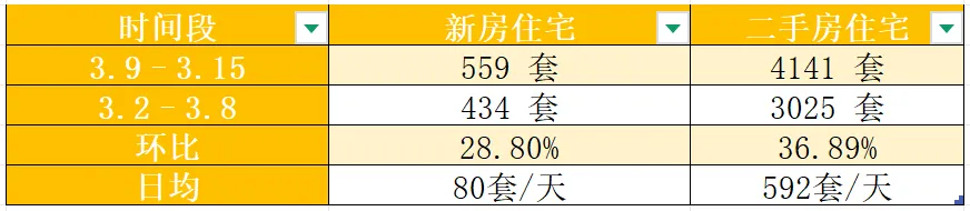 - 3.13:新房住宅 106 套(本周新房峰值) / 二手住宅 844 套