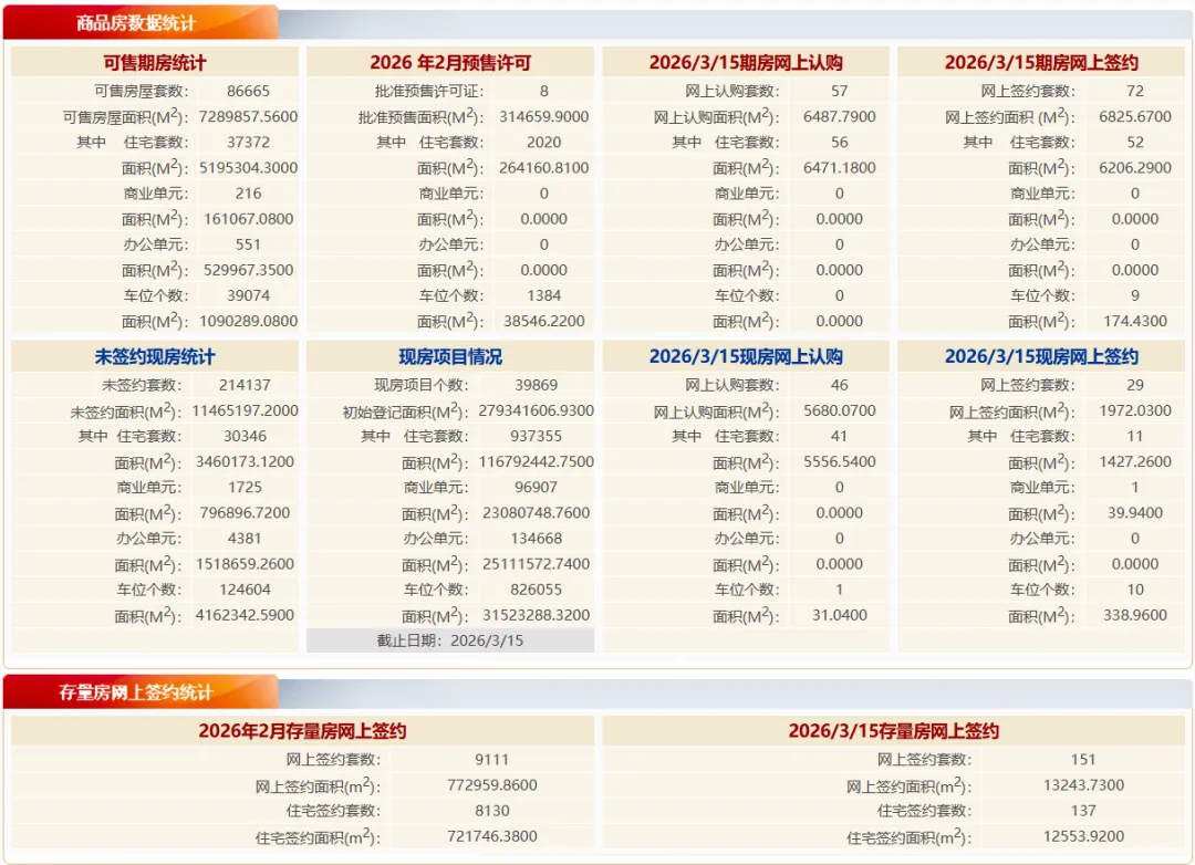 - 3.15:新房住宅 63 套 / 二手住宅 137 套