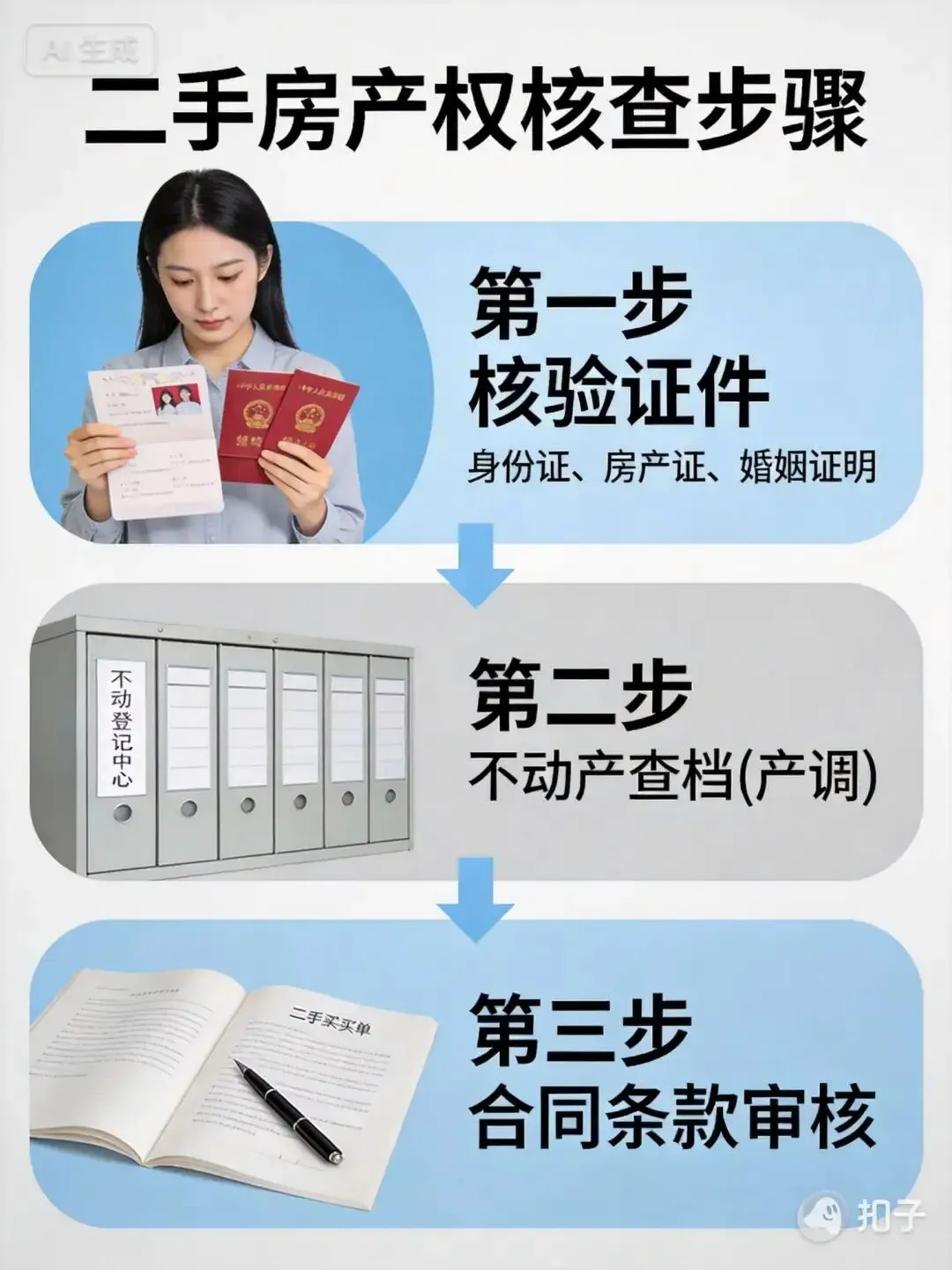 图:二手房产权核查三步流程图