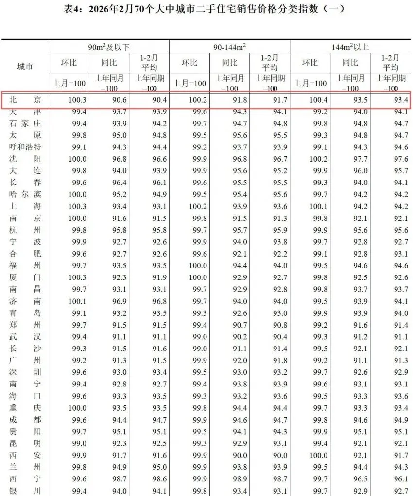 凤凰网房产北京讯3月16日消息,国家统计局公布《2026年2月份70个大中城市商品住宅销售价格变动情况》。