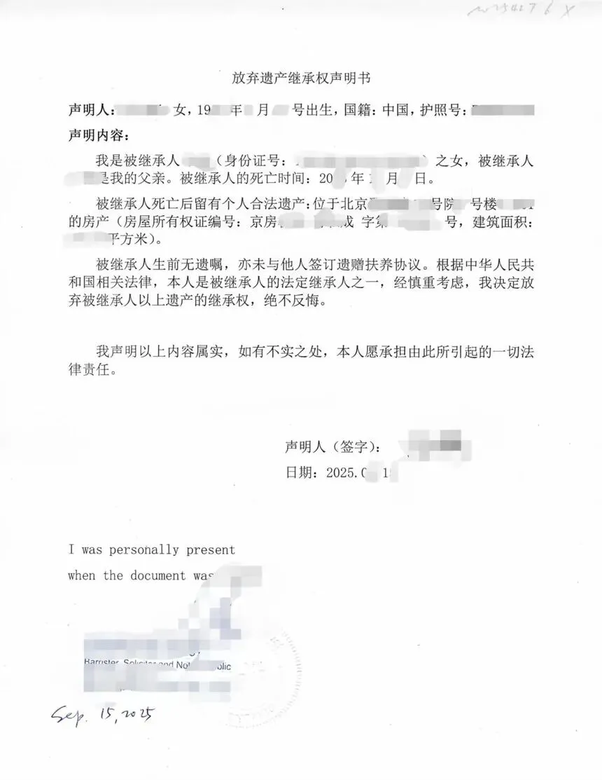中国房产继承手续:提交至北京相关部门,作为合法有效的放弃继承证明。