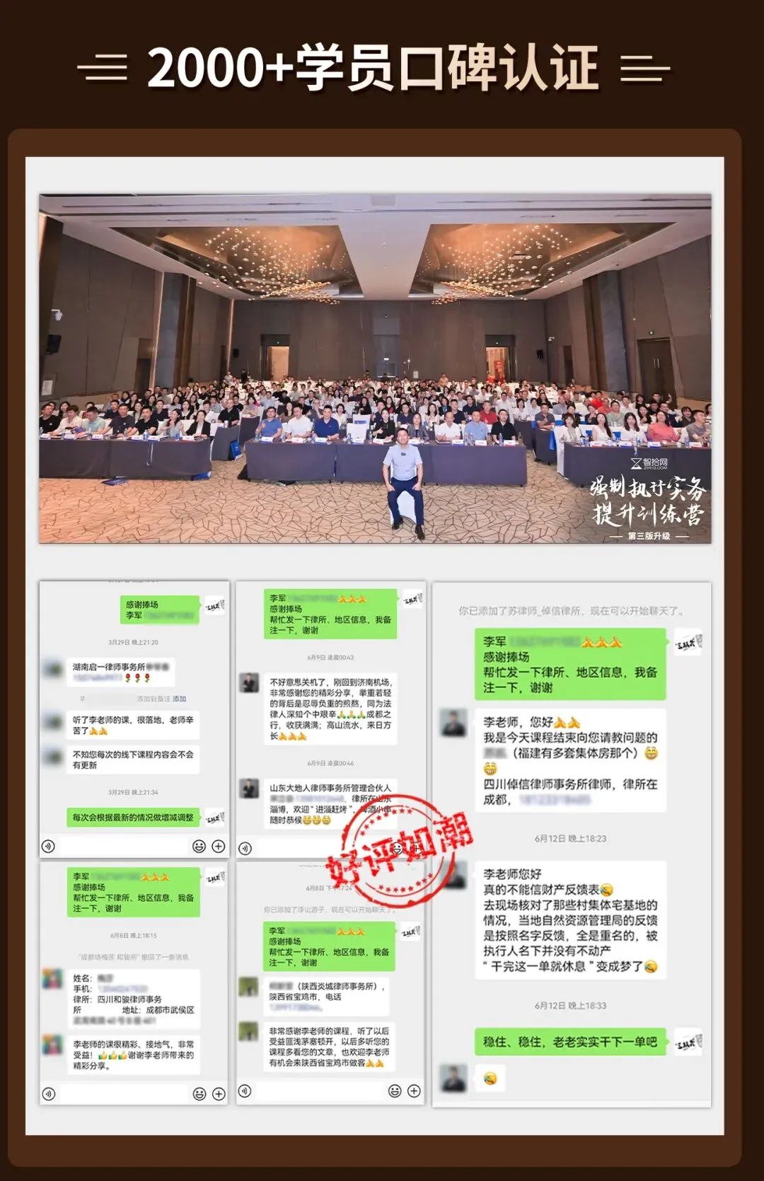 4月11-12日武汉,北京市隆安(重庆)律师事务所权益合伙人李军律师,就用2天1夜的时间,依循「财产线索挖掘→处置障碍破解→加速债权回款」的办案流程,教授大家如何把每一笔财产线索真正转化为回款!