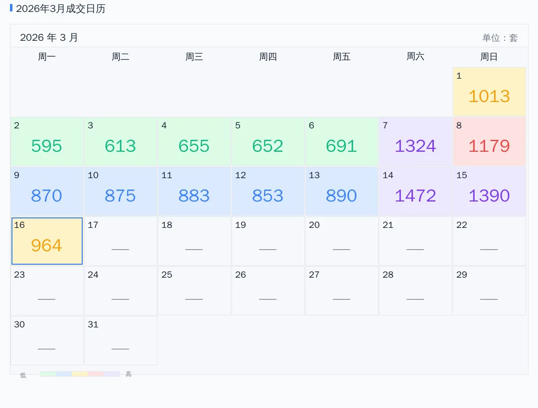 2026年03月成交日历