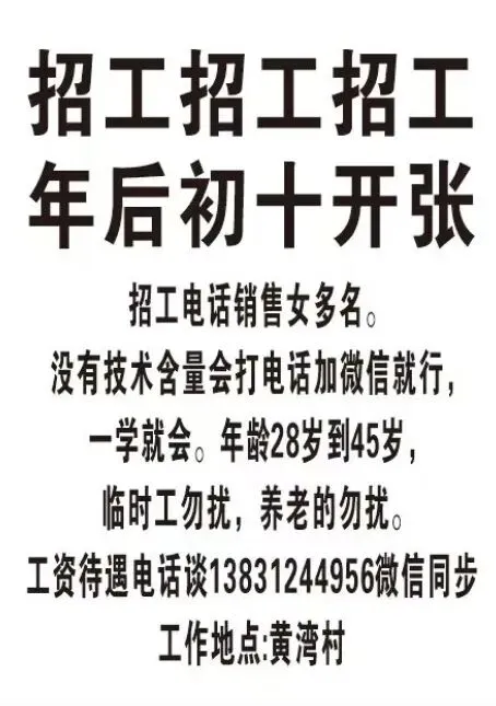 联系电话:138 3124 4956(不要短期工、养老工)