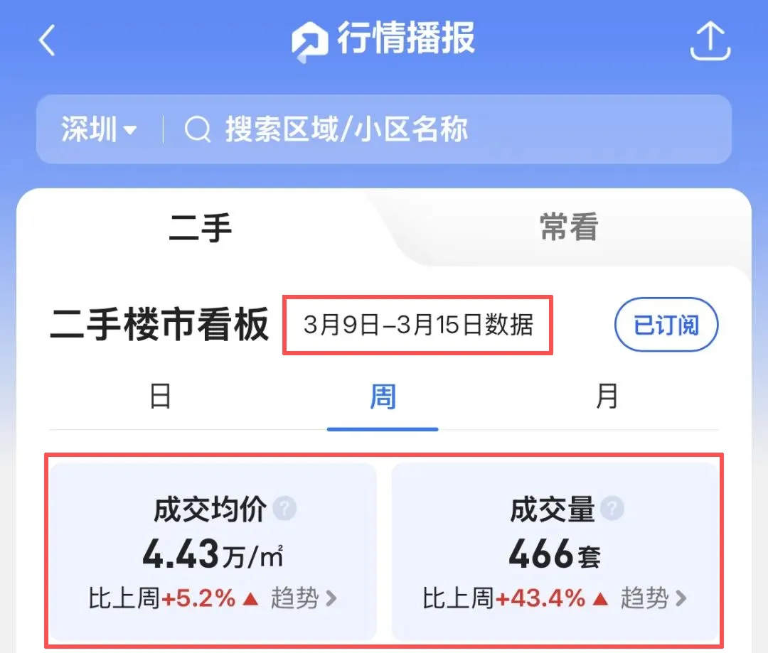 2026年3月第一周深圳全市二手房成交均价4.2w/平米