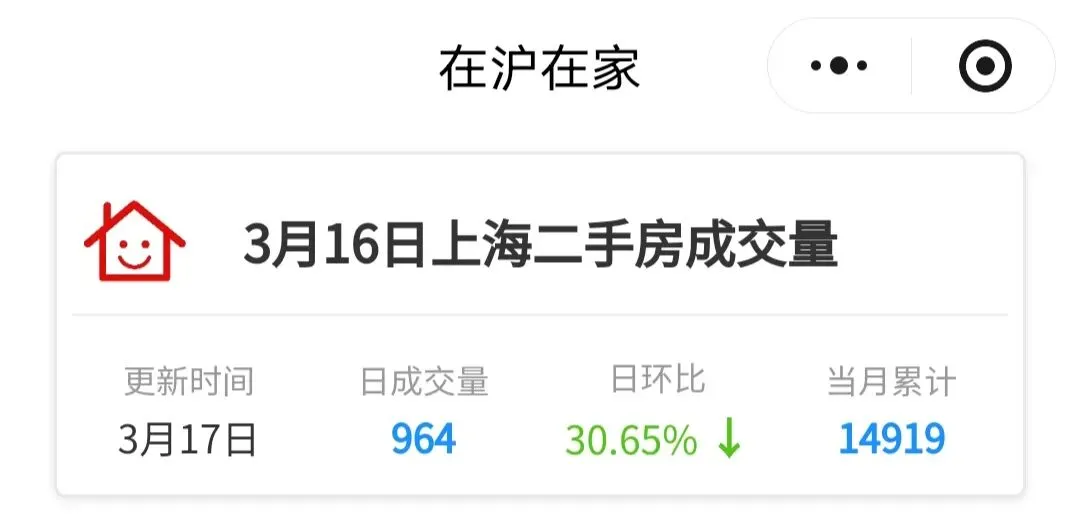 1⃣️昨日上海二手房成交964套,日环比下降📉30.65%,当月累积成交14919套。