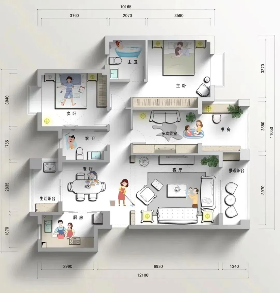 那这图好在哪儿?多功能室这种位置,才算有奔头儿。孩子大了当书房,你累了当临时客房,再不济也是「收纳密度」的兜底。房子最怕一开始就把未来卡死。