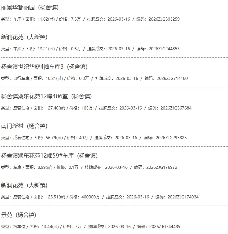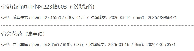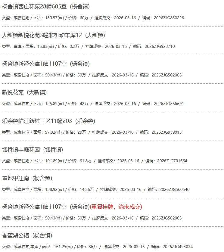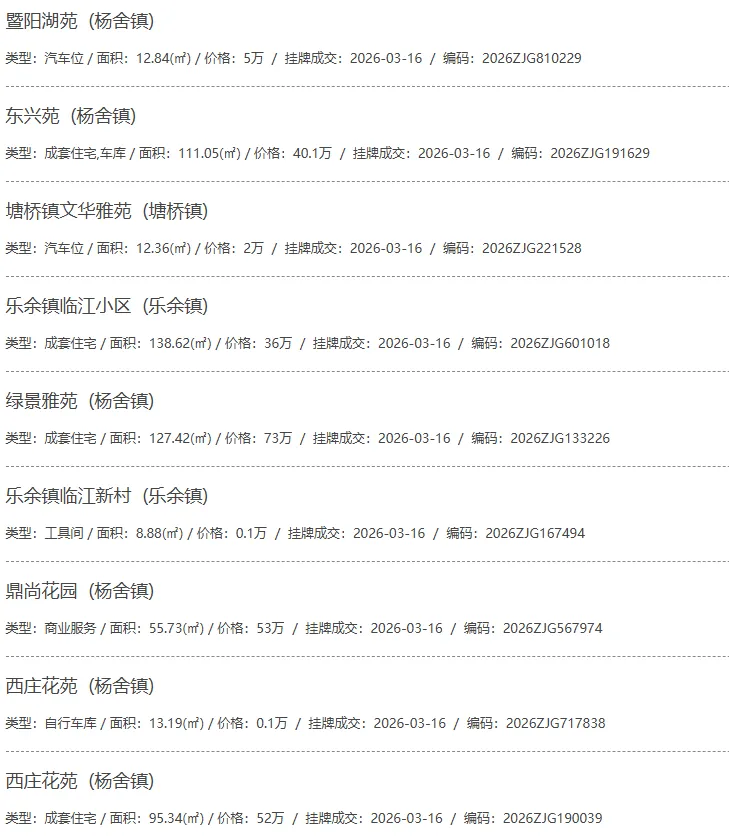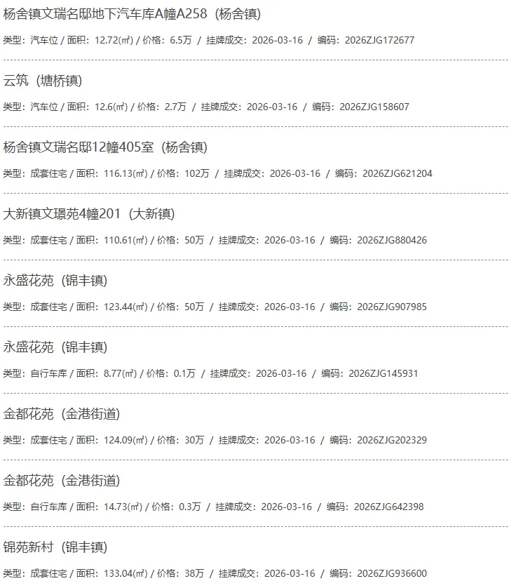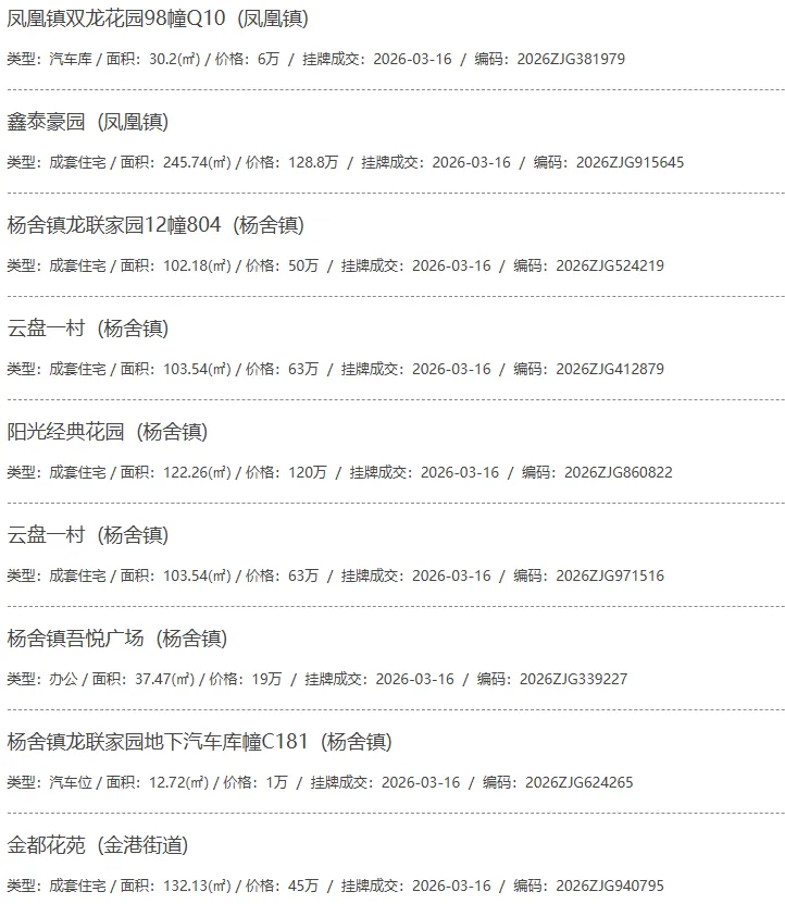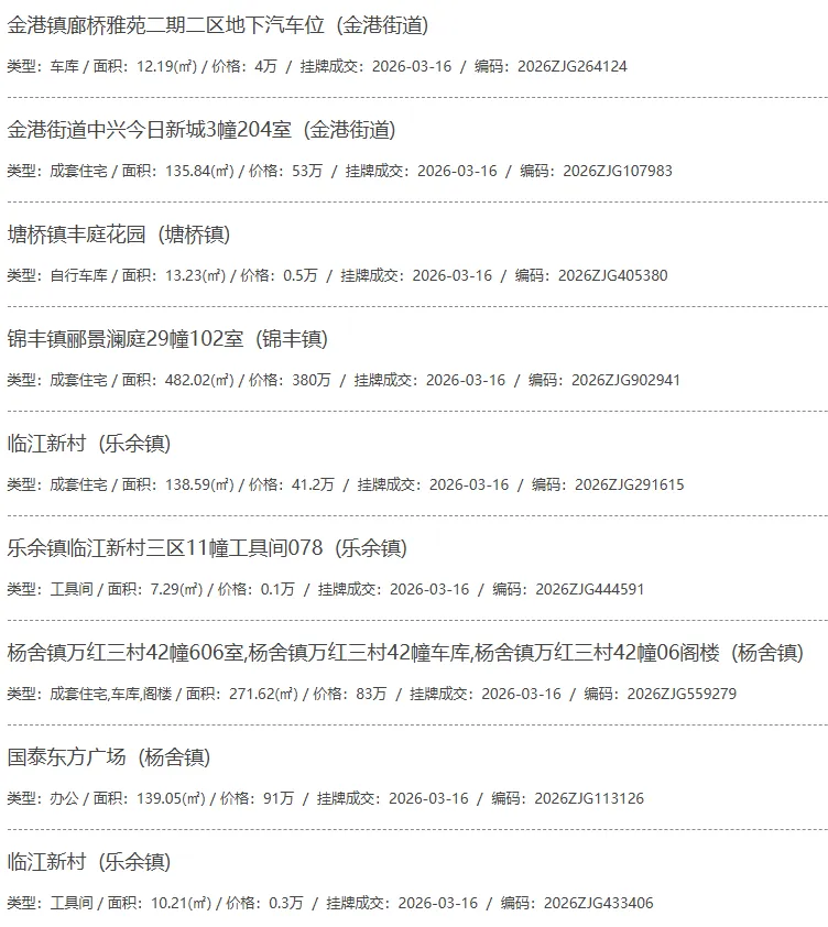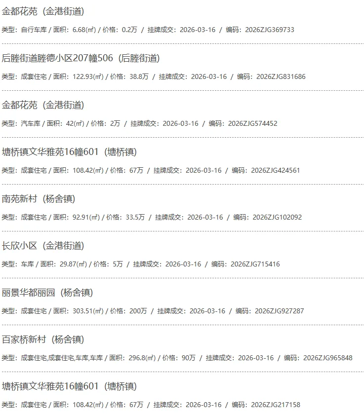 根据张家港房产网(www.zjgzf.cn)整理,(2026-03-16至2026-03-16)总共87套二手房网签挂牌成交(含自行车库及汽车库),数据根据住建局官方网签平台整理,并已同步至各对应小区的成交明细,特别提醒:此处数据及各小区成交数据中凡标注(来自网签挂牌)的,均是根据政府网签挂牌系统整理,价格可能不准,请谨慎采信;并仅作为您买房卖房的参考而非决定依据。以下为数据明细: