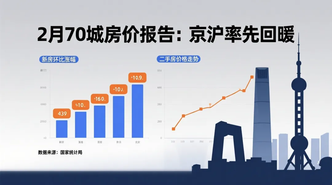 国家统计局最新数据显示,2026年2月70个大中城市商品住宅销售价格环比跌幅持续收窄,市场呈现结构性复苏态势。尤其值得关注的是,北京、上海二手房价格在经历长期调整后,首次实现环比上涨,成为本轮楼市企稳的重要信号。
