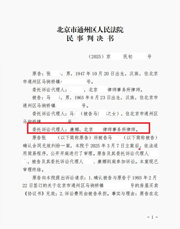 面对这场突如其来的诉讼,马某一家忧心如焚,找到了康娜律师。接手案件后,康娜律师没有止步于原告的表面理由,而是迅速梳理了跨越三十余年的关键证据链,并敏锐地捕捉到了本案的决胜关键点。